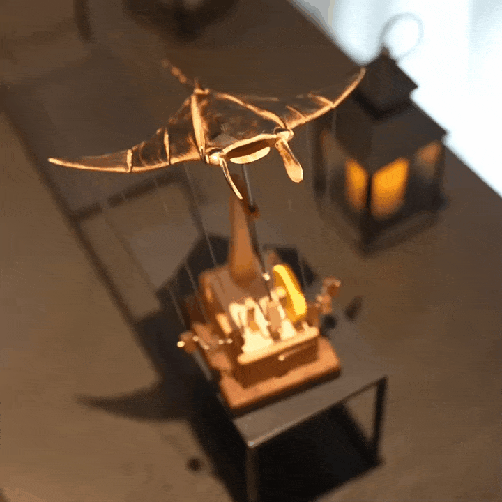 Verwandle jeden Schreibtisch oder jede Tischplatte in eine ruhige, ozeanische Szene. Dieser bemerkenswerte Automat imitiert das anmutige Flattern der Flügel eines Mantarochen durch genial gestaltete mechanische Bewegungen. Er gleitet, wellt sich und ahmt Leben nach — lautlos, sanft und hypnotisch.