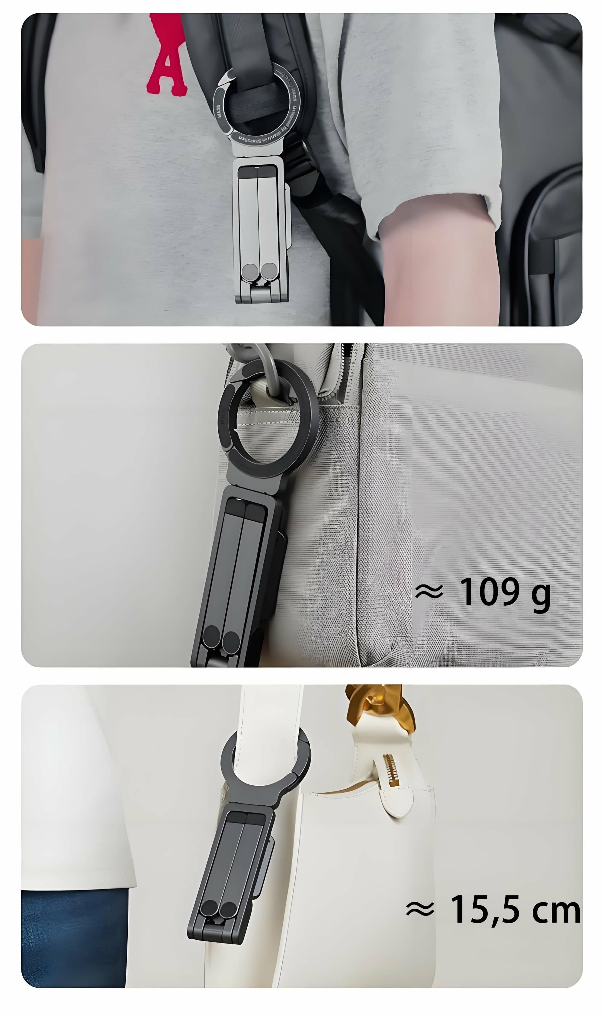 - Versteckter Haken: Zusammenklappbar und diskret zum Aufhängen von Aufnahmen und aus ungewöhnlichen Winkeln.